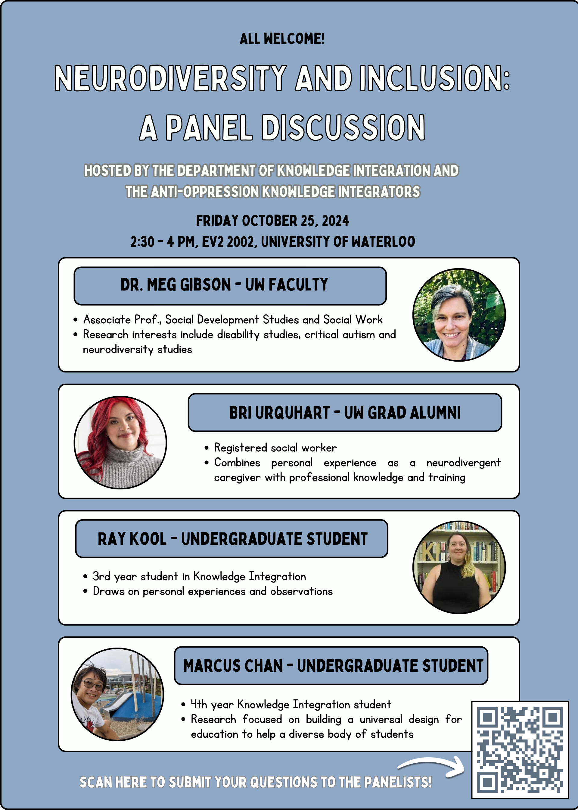 Brianna is currently the Project Coordinator for the Learning Access research project at the University of Waterloo, which is an investigation into female students' experiences of Attention Deficit Hyperactivity Disorder (ADHD)-related accommodations. She has also been a research assistant (RA) on several projects. You can find out more about her publications here or visit our research page for an overview.